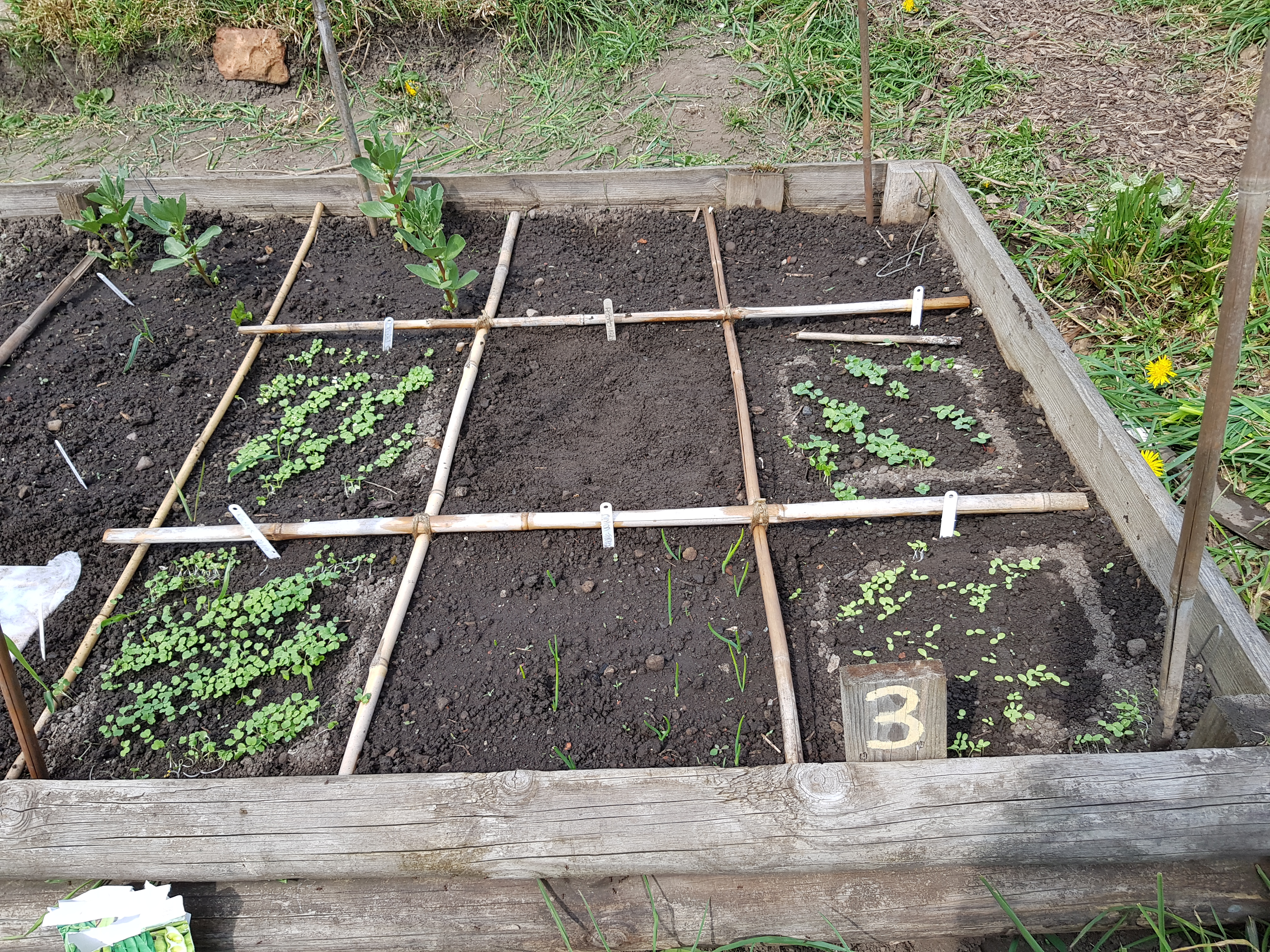 This is my personal square meter bed that has been devided into 1 square foot squares. This follows the square foot gardening